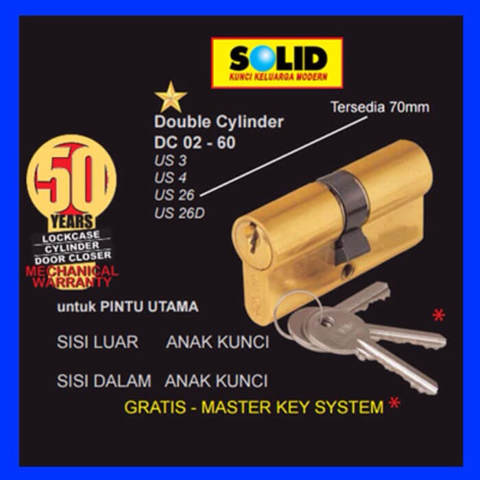 MOHON DIBACA TERLEBIH DAHULUSETIAP PEMBELIAN SILINDER KUNCI SOLID BERGARANSI 50 TAHUN. UNTUK KLAIM KERUSAKAN BARANG AKAN KAMI BANTU ASALKAN MEMILIKI BON PEMBELIAN DARI KAMI. BIAYA PENGIRIMAN UNTUK KLAIM GARANSI DITANGGUNG OLEH PEMBELI.UNTUK YANG MENGINKAN MASTER KEY HARUS REQUEST KE ADMIN KAMI. BISA MELALUI WA ATAU TULIS DI CATATAN PEMBELIAN. MOHON MAAF UNTUK REQUEST MASTER KEY MINIMAL PEMBELIAN 3 PCS. MAKSIMAL 1 MASTER KEY UNTUK 10 SILINDER. ORDER DIATAS 10 AKAN DICAMPUR DENGAN NON MASTERKEY. MEMBELI BERARTI SETUJU NO COMPLAINT.UNTUK REQUEST MASTER KEY CHAT SELLER TERLEBIH DAHULUHARGA SANGAT MURAH. SELAMAT BERBELAN
