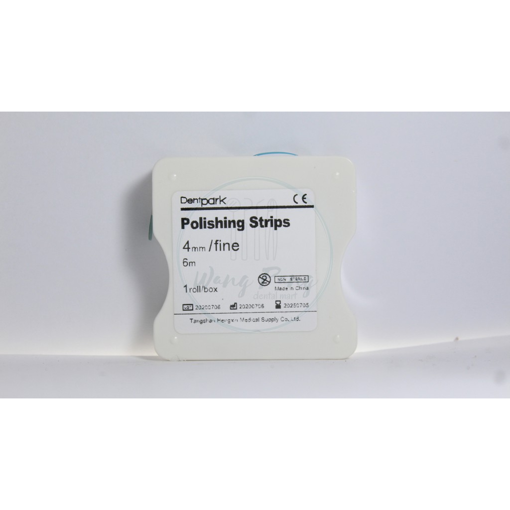 Polishing Strip Dentpark.Lebar 4mm/ panjang 6mJenis: Fine, MediumJumlah : 1 roll/box (single pack).Made in switzerl