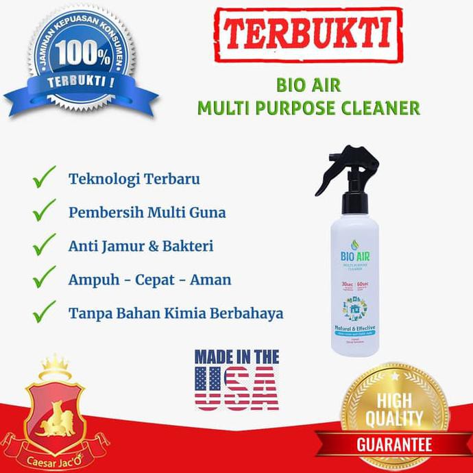 READY mari silahkan order >>>>>>Best + Recommended ProductTerbukti efektif dan maksimal. Sudah banyak yang pakai dan terus repeat order...Dengan teknologi terbaru, Bio Air All in One Multi Purpose Cleaner (Cairan Pembersih Multi-Guna) : Dengan mudah membersihkan kotoran, noda membandel, minyak, oli, endapan debu, karbon serta mencegah korosi.Cocok dan aman untuk semua jenis kendaraan bermotor (Interior / Eksterior), perlengkapan rumah tangga, perlengkapan kantor, aksesoris, pakaian, perlengkapan berkendara (sepatu, helm, jaket), dan bisa untuk berbagai jenis bahan seperti kulit, suede, imitasi, nilon, karet, plastik, kaca, vinyl, HPL, dan lainnya. Intinya segala jenis barang yang bisa menempel kotoran itu bisa dibersihkan. Buktikan sendiri...!!!* Mengembalikan warna asli dan melindungi dari korosi* Tidak mengikis permukaan cat/vernish/coating* Aman untuk semua permukaan cat (metallic/non metallic), plastik, besi, chrome, alumunium, stainless, karet, kulit/imitasi, vinyl, HPL, dsb.* Tidak menyebabkan permukaan jadi kusam* Mudah digunakan dan ramah lingkungan* Non Flammable* Non Alcohol* Non Aerosol* Non CFC* Non-abrasive* Non-corrosive* Aman di tanganCara pakai :1. Semprotkan cairan pada bidang yang akan dibersihkan lalu biarkan beberapa detik.2. Gunakan sikat halus atau sponge atau lap microfiber (opsional)3. Bilas dengan air dan atau keringkan dengan lap bersih4. Untuk noda ringan, basahi lap/sponge/sikat dengan cairan lalu aplikasikan pada bidang yang akan dibersihkan.## Catatan>> Mohon dibeli dalam 1 invoiceMenyediakan berbagai jasa kebutuhan Anjing dan Ku