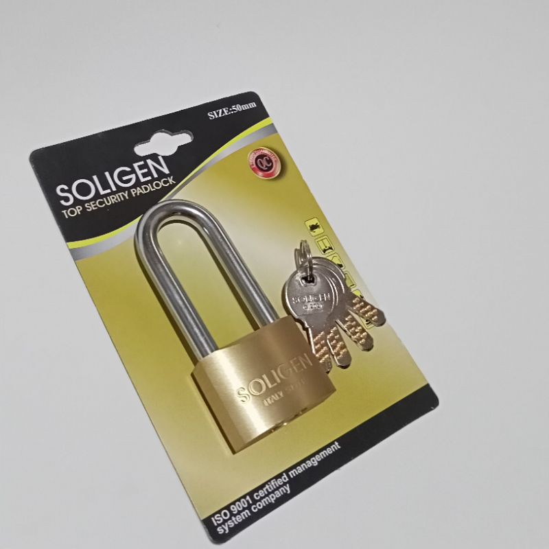 Barang Jaminan Asli SOLIGEN- Bahan 100% Kuningan- Anti Cairan Kimia- Anti Gunting- Dapat 4 Buah Kunci- Cocok untuk Gembok Pagar- Cocok untuk Gembok Rumah- ukuran 50 mm leher pa