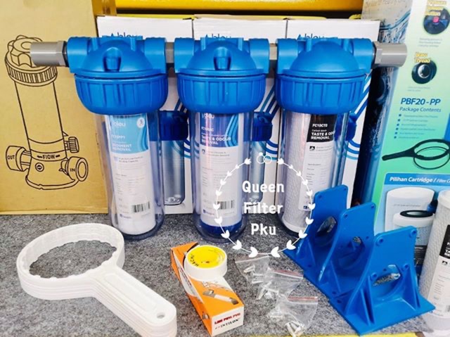 Paket Filter /Saringan Air Siap pakai untuk air yang keruh / berbau (Tidak sesuai untuk air dengan kandungan besi / mangan tinggi). Paket termasuk :3 pcs Housing PENGUIN drat 3/4"3 pcs Bracket Housing PENGUIN3 pcs Wrench Housing PENGUIN3 Set Sekrup Bracket ke Housing2 pcs Double Nipple 3/4" PVC Rucika2 pcs Sok Pipa 3/4" PVC Rucika1 pcs Seal Tape Hachi1 pcs Lem PVC Intilon1 pcs Penguin Catridge Filter 1 pcs Penguin CTO filter1 Pcs Penguin UDF FilterOutput untuk pipa 3/4 InchPaket dikirimkan belum terpasang, harus dirakit terlebih dahulu saat akan dipasang.Note:-Khusus Cartridge dikirim acak ( tidak bisa pilih micron) Segala KERUSAKAN akibat ekspedisi, antara lain : housing pecah /retak,wrench/ bracket patah, dan lain sebagainya yang disebabkan handling ekspedisi tidak ditanggung penjual. Dengan membeli produk ini maka pembeli setuju dengan syarat diatasBerat