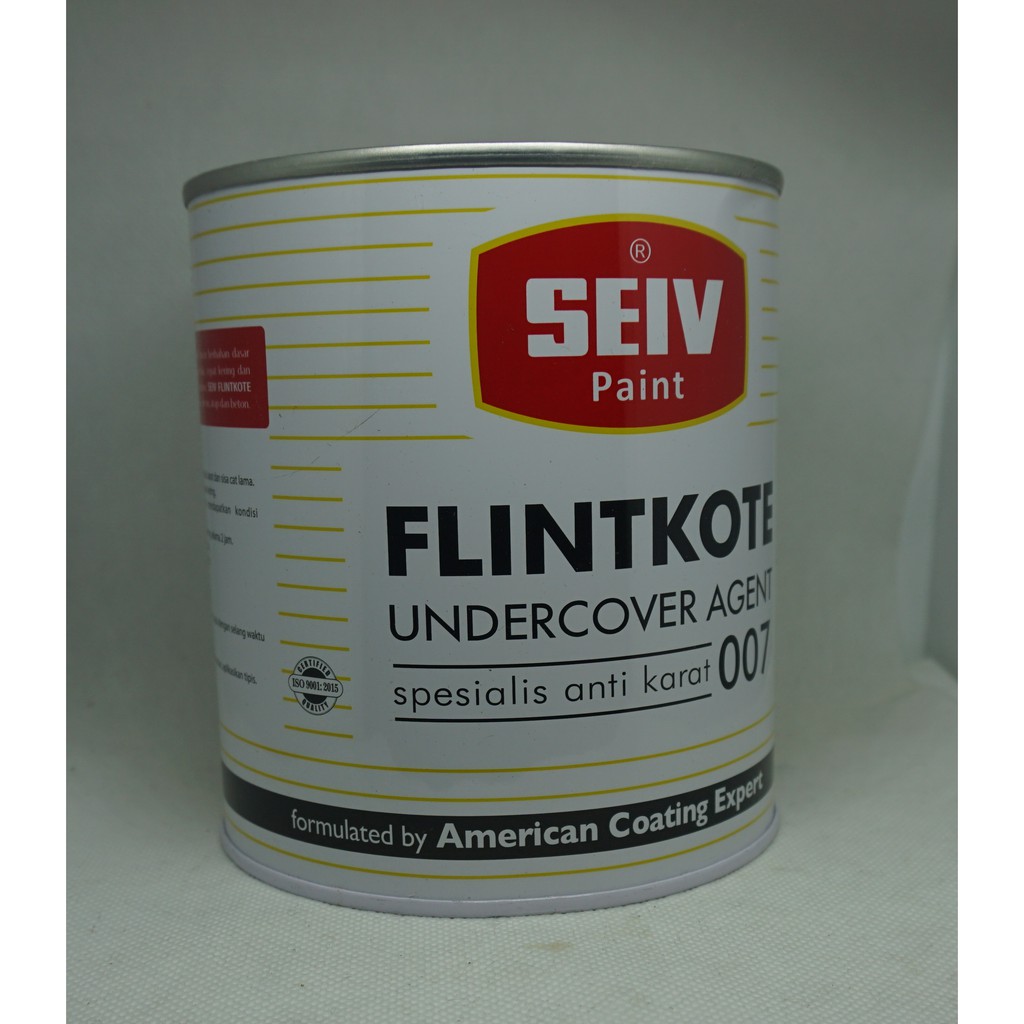 Seiv Flintkote Undercover Agent 007 adalah cat anti karat dan anti bocor berbahan dasar bituminous, memiliki karakteristik mampu menahan karat, daya lekat yang baik, cepat kering dan tahan panas hingga 120C. Selain cocok untuk penggunaan eksterior dan interior, Seiv Flintkote Undercover Agent 007 dapat diaplikasikan pada baja, metal (mobil atau motor), mesin, atap dan beton.Berbentuk seperti aspalBerwarna hitamBisa sebagai anti bocor, retak beton, dan peredam