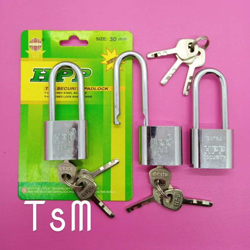 Gembok Satin Leher panjang Merk HPP ( Harga terjangkau )Kwalitas sudah teruji dalam pemakaian untuk- Gembok pagar rumah- Gembok pintu toko- gembok pengaman spd motor ( pemakaian di Cakram )- gembok pengaman lainyaTerbuat dari Material besi pilihan dan dibuat oleh pabrikan dgn technologi terkiniGembok tanpa menggunakan PER sehingga Awet Dipak
