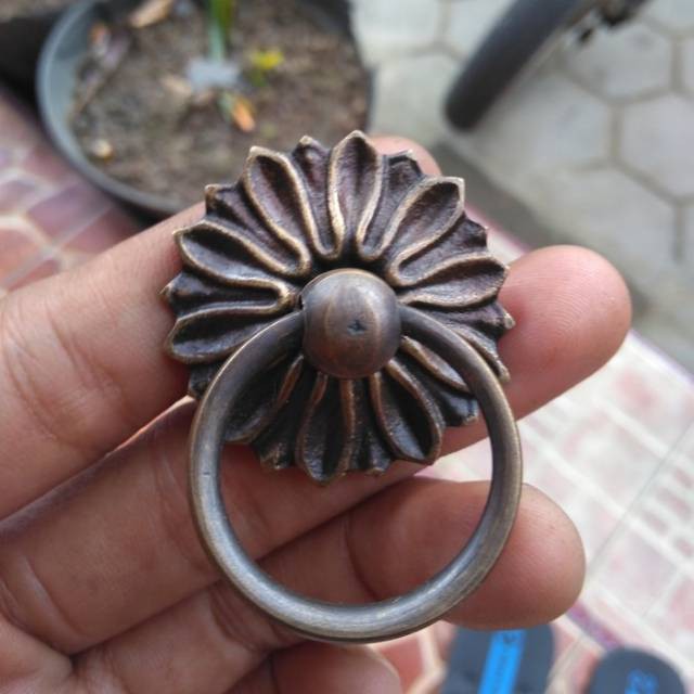 Name: Brass Ring Pull / Tarikan Laci & Lemari Kuningan Antik Motif Lerek Termurah