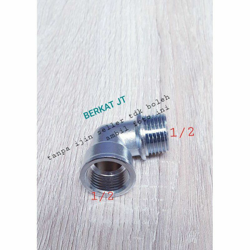 -sambungan keni L ukuran 1/2 ×1/2 -derat luar nya 1/2 dan luar dalam 1/2-bahan kuningan di crom-tebal dan kuat -buat segala keperluan -kwalitas bagus -terima