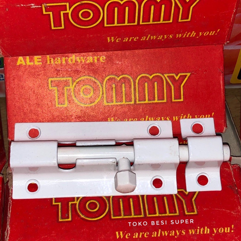 Grendel Pintu warna putih merk TOMMY ukuran 3"NB : Mohon tanyakan stok terlebih dahulu sebelum melakukan pemesanan dikarenakan stok berjalan.Barang yang akan dikirim akan dilakukan pengecekan terlebih dahulu sebelum dikirimkanKehilangan / Kerusakan paket dalam pengiriman oleh kurir, diluar tanggung jawab kami (bisa klaim langsung kepada pihak kurir yang dipilih)<< NO COMPLAIN, NO RET