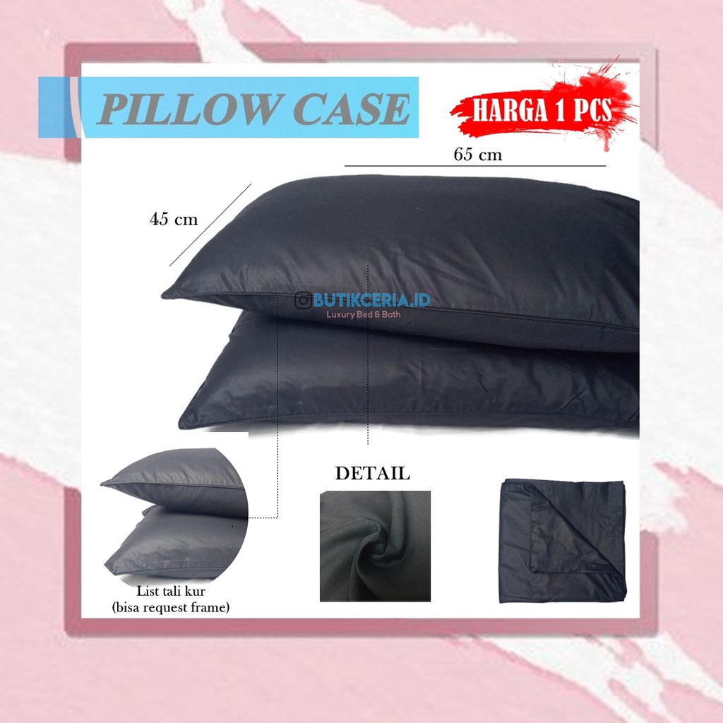 Selamat datang di toko Gudang Grosir 21 (CERIA Luxury Bed&Bath)Jangan lupa follow toko kami agar mendapat kan info dan promo produk terbaru setiap hari nya.PRODUK INI PREORDER DAHULU (proses penjahitan memerlukan waktu 3-5 hari baru kami kirimkan, bila stok ready langsung kirim pada hari yg samaHARGA UNTUK 1 PC YA KAK BUKAN 2 PC (minimal order 2 buah)Sarung bantal kepala dengan ukuran 45x65 cm atau Sarung guling ukuran 35x95 cm, Terbuat dari kain katun panca berkualitas tinggi pinggiran list menggunakan tali kur, bisa juga request pinggiran frame/kuping dan ukuran costum (dengan harga berbeda)Link ini tidak hanya sarung bantal kepala namun bisa pesan sarung guling juga (konfirmasi terlebih dahulu) agar tidak salah dalam pengirimanUntuk melengkapi kebutuhan ruangan anda kami juga punya berbagai produk lainnya, Silahkan hubungi kami melalui fitur chat.Sebelum oder pastikan untuk membaca catatan dari penjual ya Kak.#sarungbantal #sarungguling #sarungpolos #sarungbantalkepala #sarungbantalpolos #sarungguling