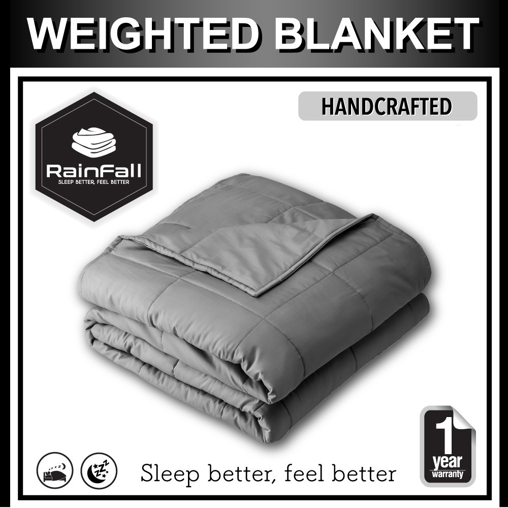 NOTE:Ini untuk customer yg ingin custom ukuran (misalnya double, queen, king, super king, california king, dll). Silahkan chat terlebih dahulu dan infokan Ukuran, Warna, Berat (atau berat badan) yang diinginkan.-. RainFall memberikan GARANSI 1 TAHUN sehingga pengguna tidak perlu khawatir dengan resiko cacat produk seperti jahitan lepas, robek, bocor, dan lainnya.-. RainFall proses penjahitannya 2 lapis (double stitches) sehingga selimut kuat dan tahan lama.-. RainFall juga menyediakan warna, ukuran, dan berat custom dengan proses pengerjaan hanya kurang lebih 3-5 hari kerja (tergantung ukuran). Silahkan chat untuk pembuatan custom.-. Selimut RainFall bisa dicuci menggunakan mesin cuci ataupun dengan tangan.Materials:Blanket (inner):- Pure Breathable 100% Cotton- Thin Polyster Layer- Soft Microfiber Batting 8 OZ- High Density Micro Glass Beads (Odorless and Non-Toxic)Duvet cover Cotton (outer):-. Pure Breathable 100% CottonDuvet cover Tencel (outer):-. Untuk yg bermotif (timbul): Organic Jacquard Sutra/Tencel-. Untuk yg bermotif (tidak timbul): Organic Tencel Modal-. Untuk yg tidak bermotif: Organic Tencel 60sBerat selimut yang dipakai tergantung dari berat badan pengguna, silahkan lihat dibawahUntuk pengguna dewasa dengan berat badan40-59KG -> 5KG60-79KG -> 7KG80-100++KG -> 9KGUntuk pengguna anak-anak diatas 3 tahun20-39KG -
